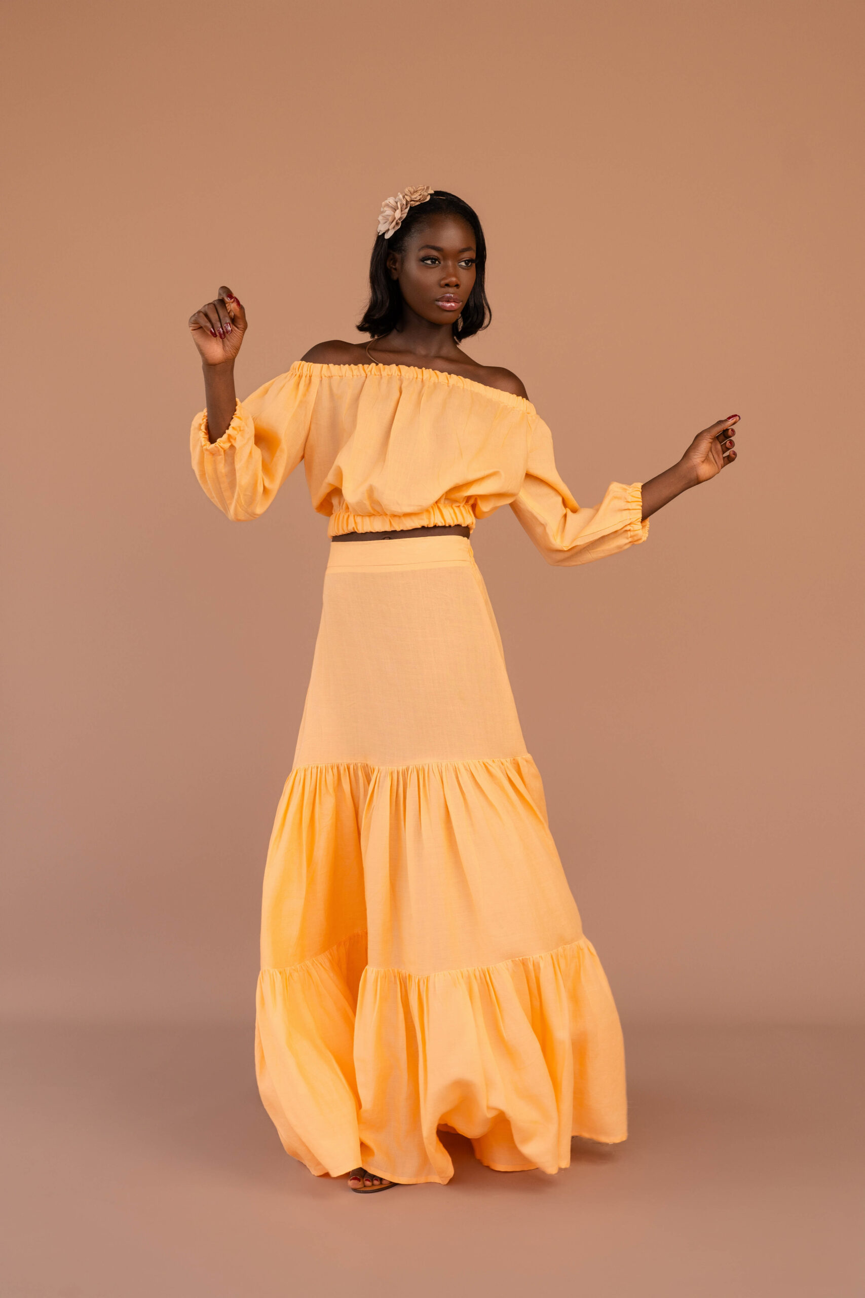 Choix des options Ce produit a plusieurs variations. Les options peuvent être choisies sur la page du produit Quick ViewCFA 35.000Le prix initial était : CFA 35.000.CFA 24.500Le prix actuel est : CFA 24.500.Jupe maxi à volants en lin. Ceinture élastique au dos pour plus d’aisance et fermeture invisible sur le côté.