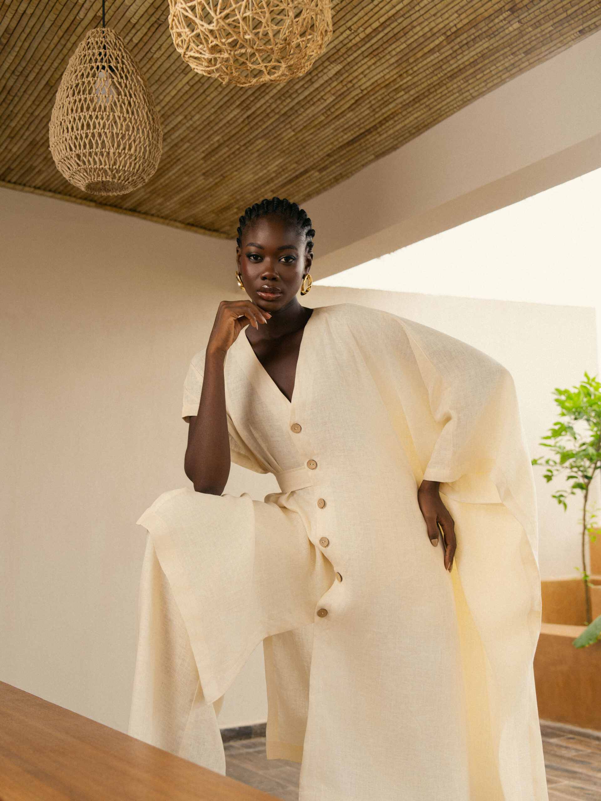 Boubou en fils d’argent à nouer à l’intérieur avec des lacets pour marquer la taille. Jolies plis en finition et à l’encolure