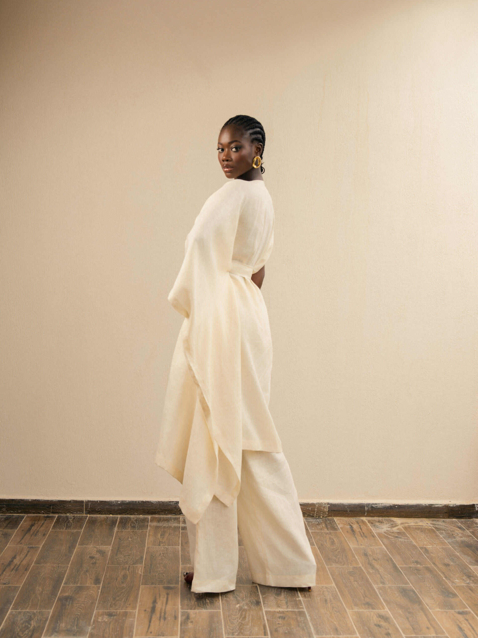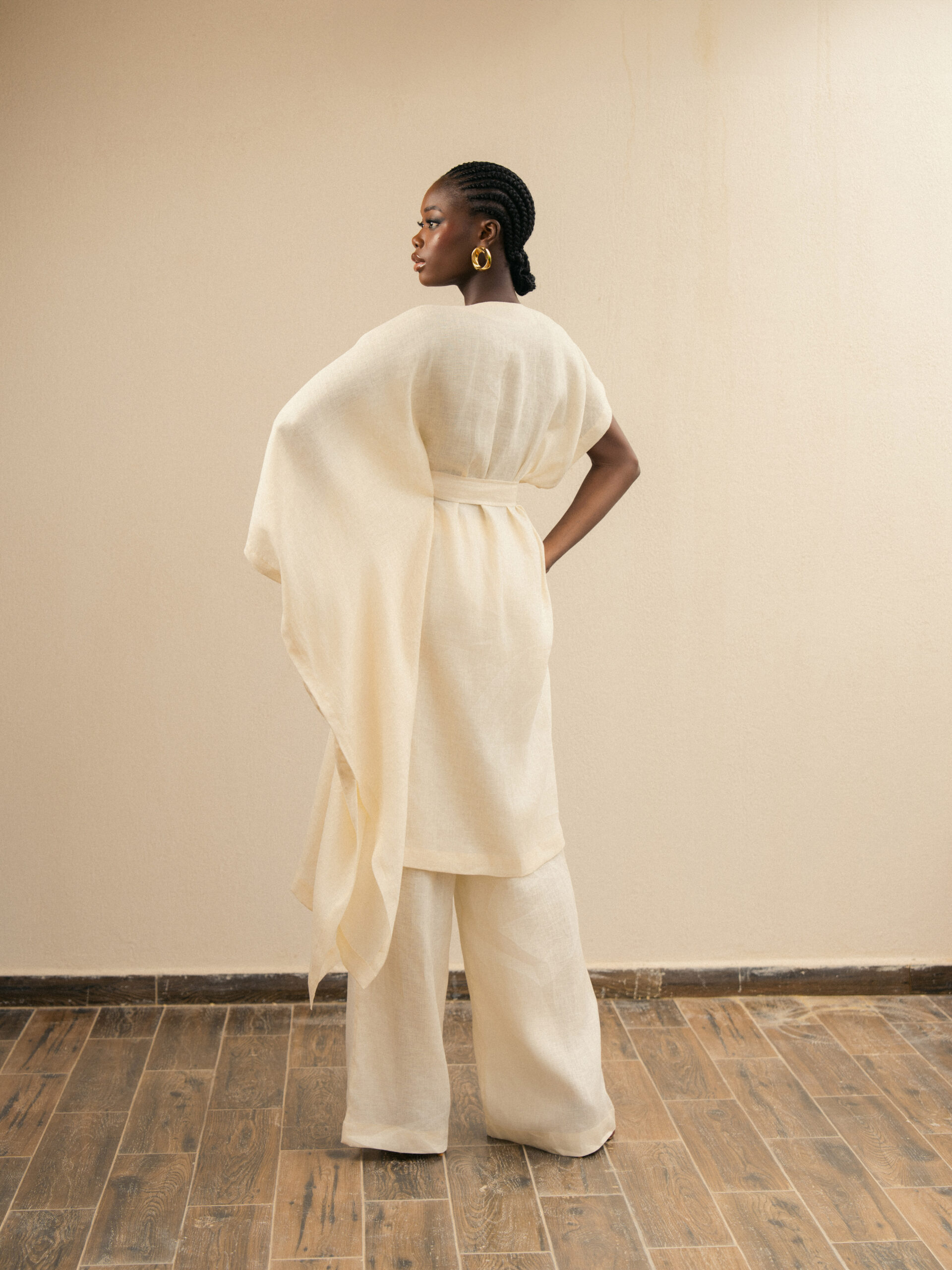 Tunique asymétrique en lin à nouer à la taille.